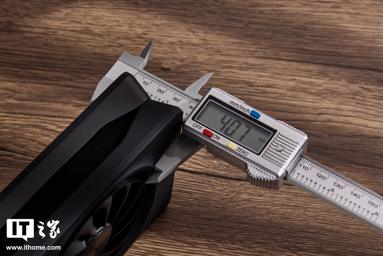这次的公版卡采用了双风扇设计,不仅体积小巧,重量也非常轻便。IT之家实测其三围分别达到了 285*98.4*40.7mm(不含挡片),裸卡重量只有 824g 左右。