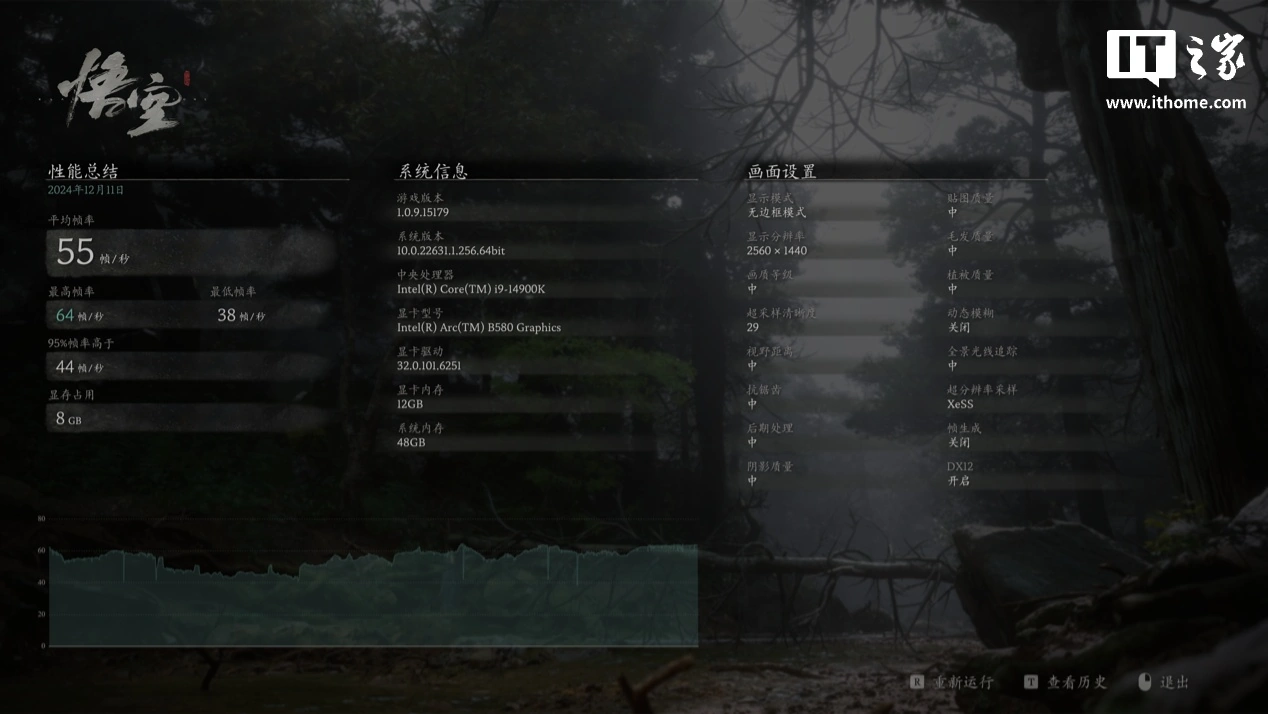 不管它再怎么众生平等,对硬件平台要求再高,《黑神话:悟空》都是一款无法绕过的 3A 游戏,即使知道 intel Arc B580 显卡不太可能跑满 2K + 影视级画质,但还是要测它。