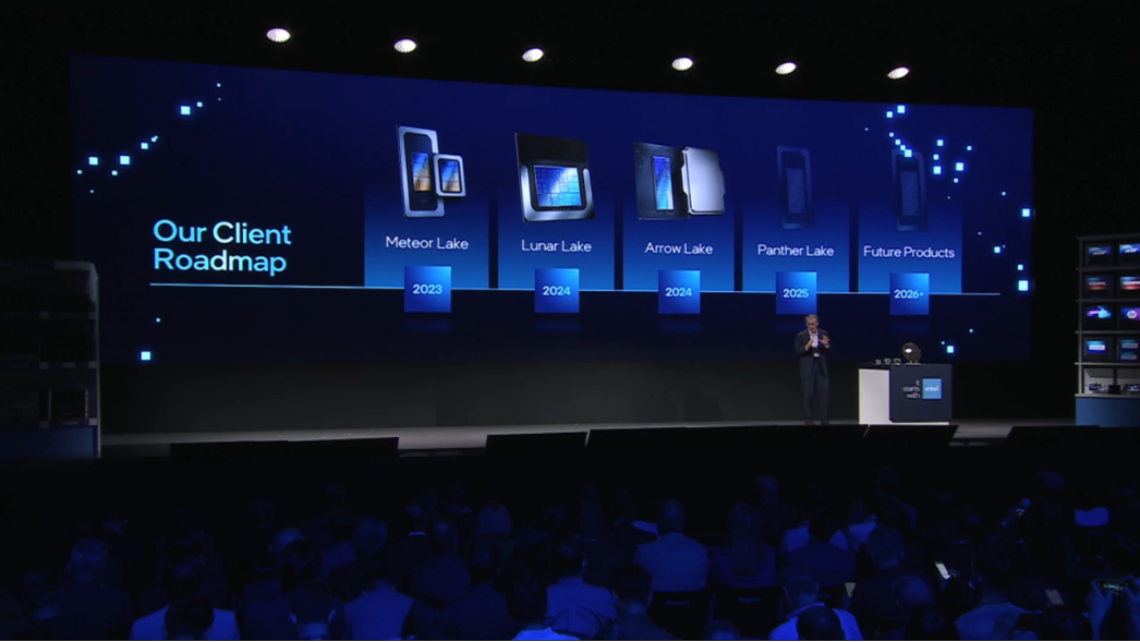 英特尔去年12月,正式发布酷睿Ultra处理器。根据英特尔的酷睿 Ultra 产品路线图,2023年为Meteor Lake,2024年有Lunar Lake、Arrow Lake,2025年为Panther Lake,2026年Future Products还没有具体架构代号。