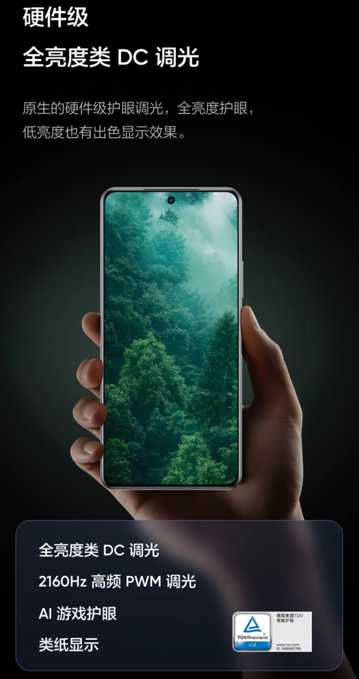 真我 Neo7 支持硬件级全亮度类 DC 调光,官方开放全亮度 DC 调光和高频 PWM 调光 + 类 DC 调光供用户自由选择。该款手机支持“AI 大神辅助 2.0”,首发召唤师技能倒计时功能,提供对手闪现 / 治疗技能倒计时、AI 智能报点、全队 AI 辅助等能力。