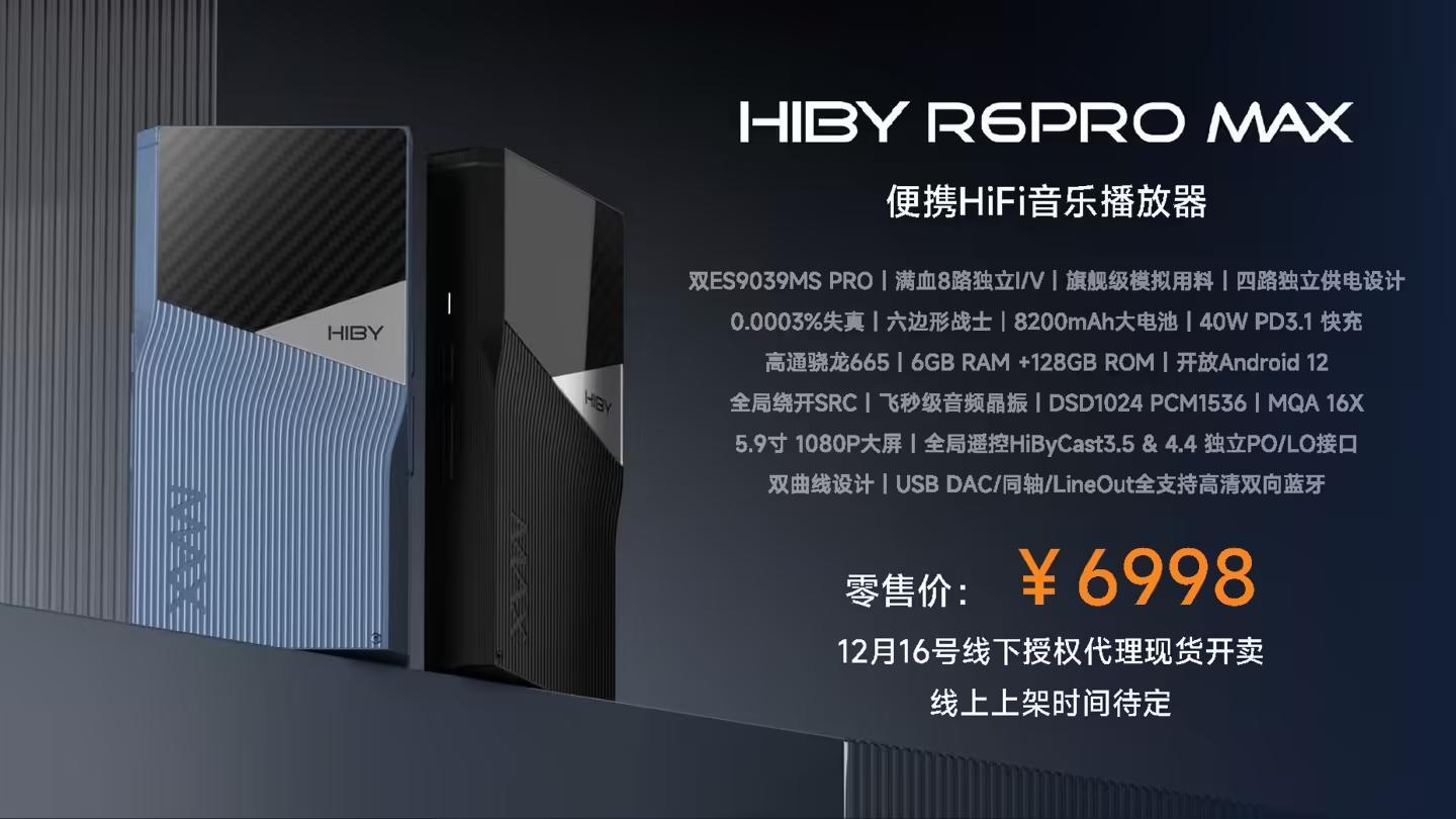 IT之家 12 月 16 日消息,海贝宣布旗下 HIBY R6PRO MAX 便携 HIFI 音乐播放器即日起在线下渠道开启销售,定价为 6998 元,不过线上上架时间仍然待定。