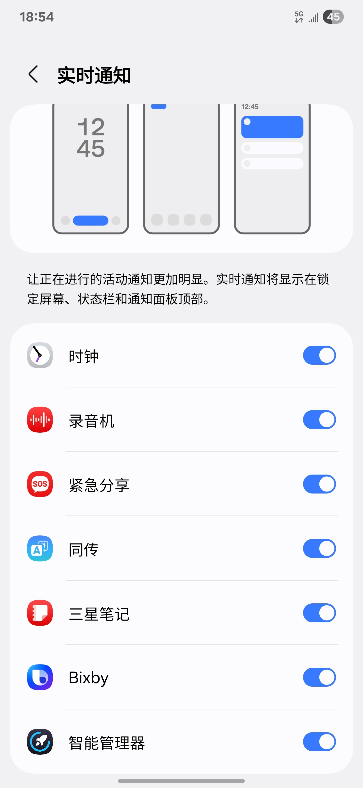 据博主 @i冰宇宙 分享,三星 One UI 7 Beta2 系统增加了实时窗(此处预计指“实时通知”功能)的可用类型,包括 Bixby,即左上角的药丸。