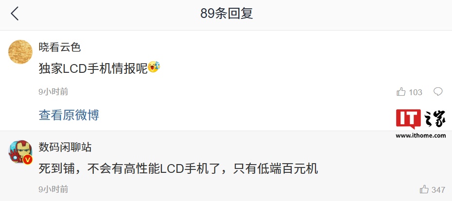 IT之家 12 月 17 日消息,今日有网友询问 LCD 手机相关信息,博主 @数码闲聊站 今日回复称“死到铺,不会有高性能 LCD 手机了,只有低端百元机”。
