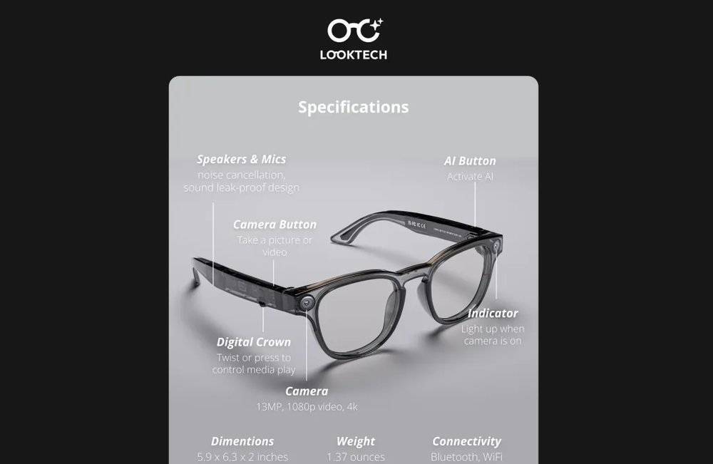 回车科技(LookTech)发布的 AI 眼镜,外观设计与 Ray-Ban Meta 高度接近 | 图片来源:回车科技官网