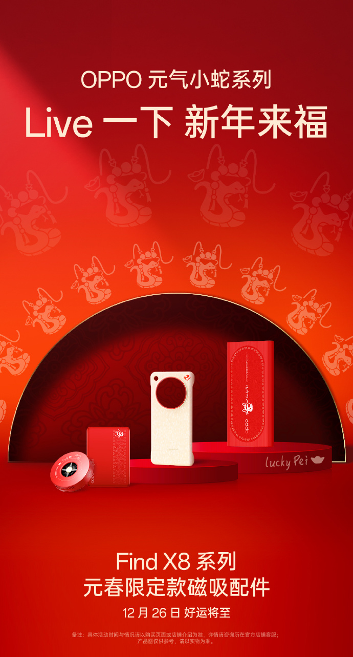 文章来源于互联网:IT之家-OPPO Find X8 系列元春限定版磁吸配件公布,12 月 26 日发布