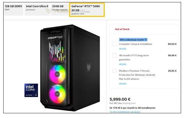 近日,德国知名零售商Otto.de意外地上架了两款搭载全新NVIDIA GeForce RTX 50系列显卡的台式机,尽管这两款产品很快被撤下,但幸运的是,VideoCardz及时捕捉到了这一瞬间,并截图保存了相关的配置和价格信息,使得公众得以一窥这两款高端游戏PC的概貌。