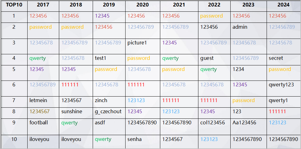 “弱密码”之所以会“弱”,有一个重要的原因就是可预测,毕竟密码是由人来设置的,而人类的情感和行为,是相通的。