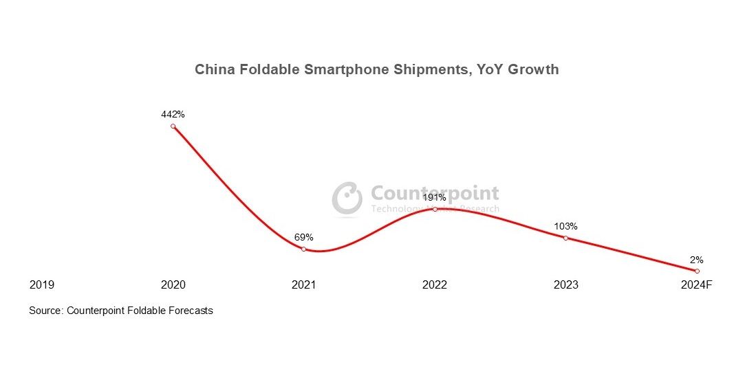 中国作为全球最大且最重要的折叠屏手机市场,预计 2024 年出货量将占据全球一半以上,其发展趋势对全球市场具有深远影响。