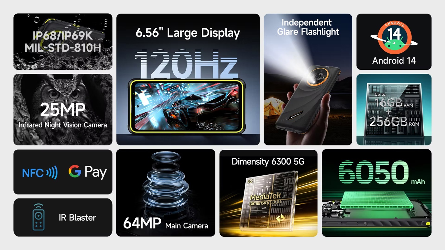 IT之家 12 月 22 日消息,Ulefone 的首款 5G 三防智能手机 ——Armor X31 Pro 现已正式发布。该机搭载了天玑 6300 处理器,预装 Android 14,内存为 8GB,存储空间为 256GB,并支持通过 microSD 卡扩展至最大 2TB。