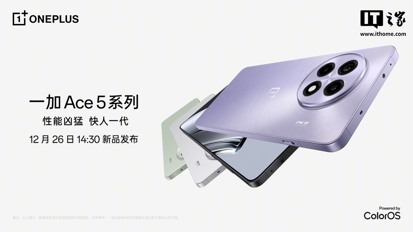 IT之家 12 月 22 日消息,一加 Ace 5 系列手机将于本月(12 月 26 日)发布,系列手机首次双杯齐发,将分别搭载高通骁龙 8 Gen3 / 至尊版处理器。