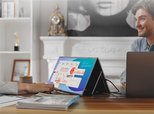 MDSA156采用了创新的双面板设计,屏幕尺寸达到15.6英寸。两块面板通过精密的铰链连接,能够315度自由旋转,不仅支持传统的帐篷模式,还能轻松切换至平板模式,满足用户在不同场景下的使用需求。