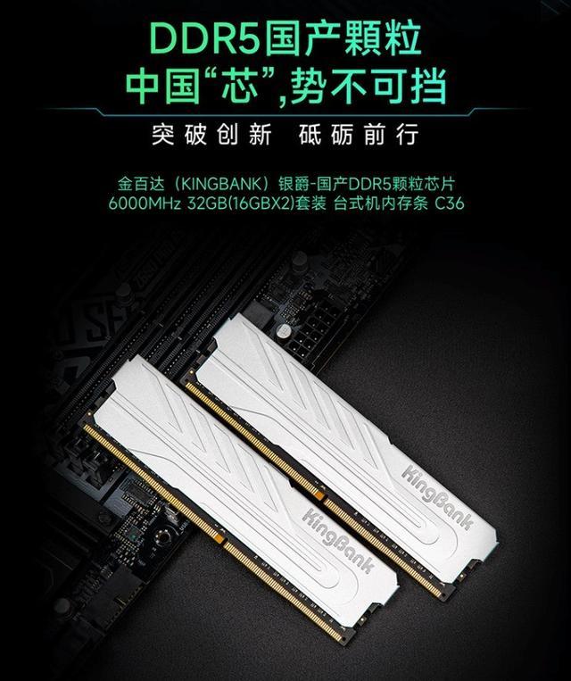 近日,金百达和光威两家公司在电商平台上推出了基于国产颗粒的DDR5内存条。这两款新品均为16GBx2套装,售价仅为499元。据官方介绍,这些内存条所使用的颗粒完全由国内生产。这两款DDR5内存条均为6000CL36规格,适用于台式电脑,频率为6000MHz(XMP),并支持英特尔XMP 3.0和AMD EXPO超频。同时,这两款产品的时序均为CL36,工作电压分别为1.35V和1.4V。
