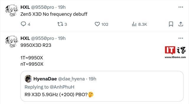 这位消息人士进一步表示,X3D 系列 “Zen 5” 处理器在频率方面不会较非 X3D 款式出现下降。