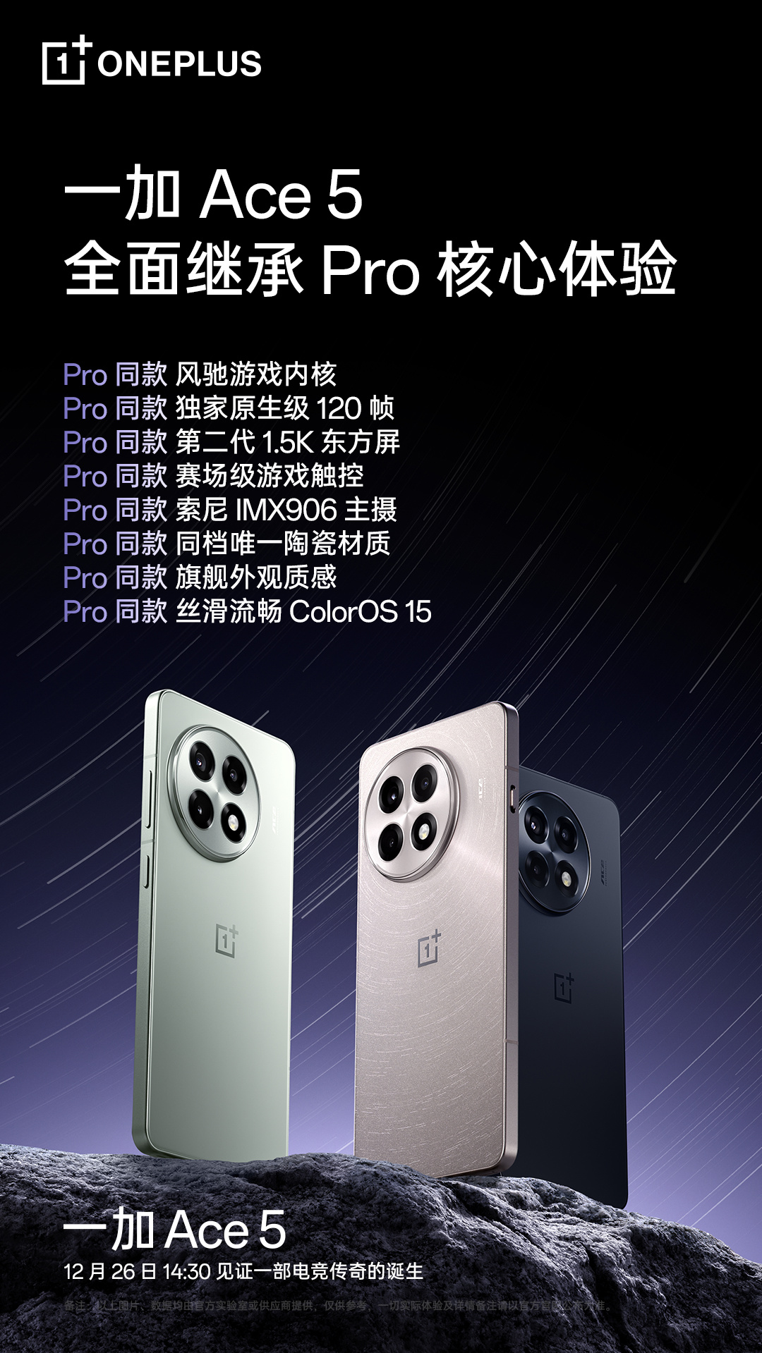 IT之家 12 月 24 日消息,一加手机官方今日继续发文预热新机,官方称 Ace 5 标准版手机全面继承 Pro 核心体验,包括: