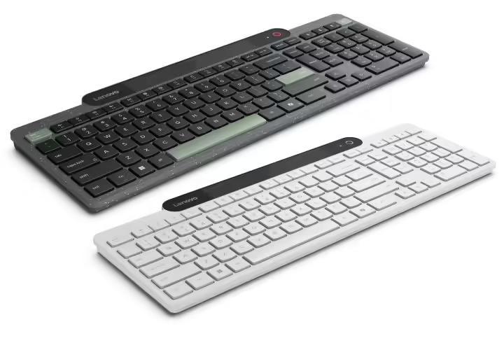 IT之家 12 月 25 日消息,Evan Blass 今日曝光了一款联想为 CES 2025 准备的无线蓝牙键盘新品。据他介绍称,这是一款自充电蓝牙键盘,可利用太阳能和环境光供电,最多可连接三台设备。