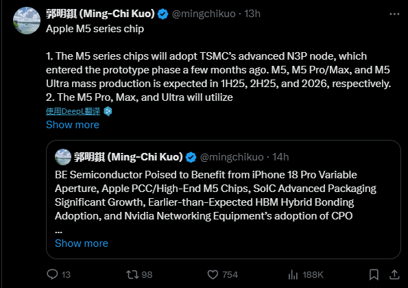 可能连果粉都没有料到,M5芯片的进度会推进得这么快。
