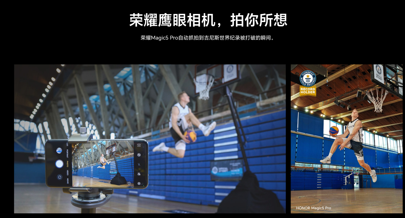 到了荣耀 Magic5 系列,鹰眼相机的引入为其带来更强的抓拍能力,配合旗舰级三主摄,实“对得准”、“拍得清”、“拍得到”的绝佳体验,并且支持主角追焦锁定,彻底解决了过往消费者在使用手机影像时对焦慢、抓拍难等痛点。可以说鹰眼相机是荣耀践行以人为核心的品牌理念的体现,它为消费者日常拍照体验提升是实实在在可以感知到的。
