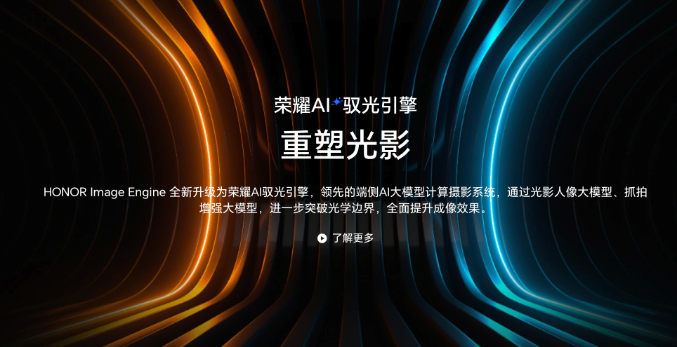 以人性化的 AI 摄影体验为目标,荣耀带来全新的 AI 驭光引擎系统。该系统以人像、抓拍、长焦等核心场景为牵引,通过串联从镜头模组到图像传感器、再到影像算法的软硬协同,以及端侧大模型和云端大模型的算力调度,用 AI 全面重构光学系统和色彩风格。