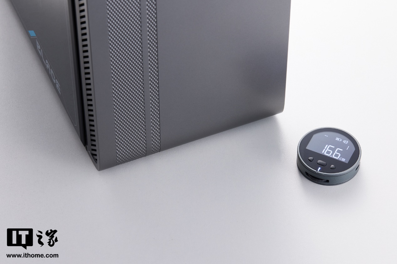 官方给到的机箱三围尺寸分别是 297*168*353mm,IT之家实测数据属于误差范围内。机箱内部最大支持 265mm 宽的显卡,配备双 SSD 扩展插槽和 HDD 硬盘位。