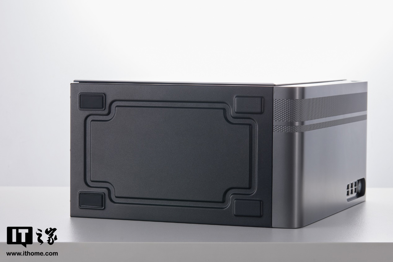 机箱另一侧和顶部均为全密封的金属盖板,前面板左侧包边下方提供了一组斜切装饰条。