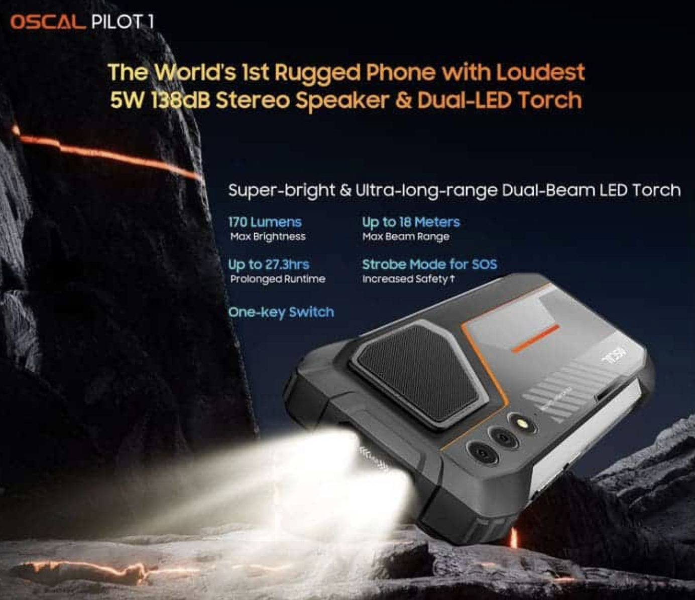 文章来源于互联网:IT之家-OSCAL PILOT 1 三防手机发布:配 5W 扬声器覆盖 25 米音域、集成 170 流明亮度 LED 手电筒