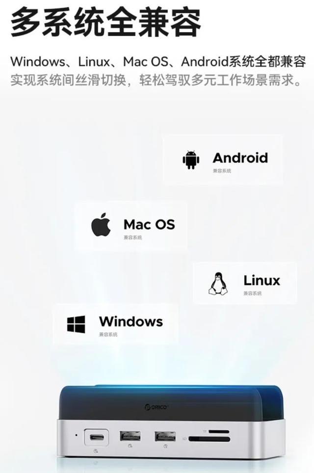 特别值得一提的是,MiniDock的兼容性也十分出色。除了可以完美配合M4 Mac mini使用外,它还支持Windows、Linux和Android等其他系统平台。这种跨平台的兼容性大大提升了产品的实用价值,即使用户未来更换使用环境,MiniDock仍然可以继续发挥作用。