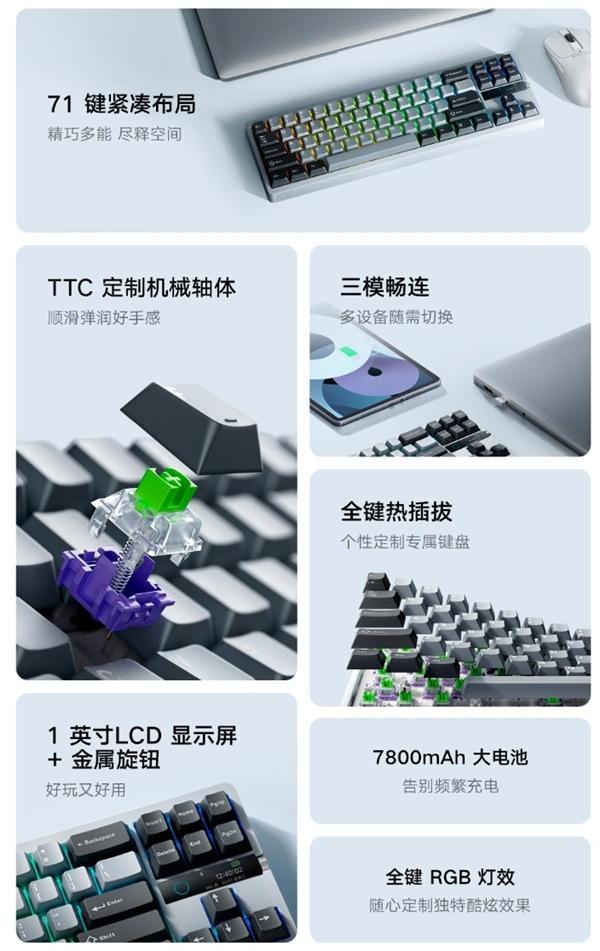 文章来源于互联网:凤凰网-449元!小米机械键盘MK 71 Pro开启众筹:71键 带屏幕、旋钮
