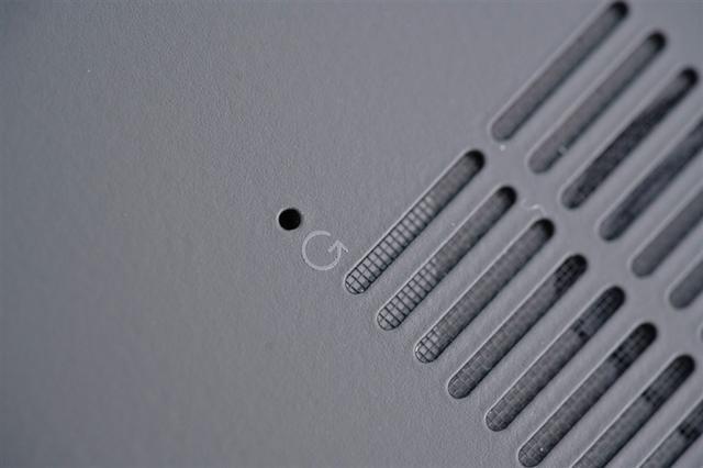 底部散热进气口旁边还设置了一个小小的重启按钮,需要用牙签之类的尖锐物体才能触碰到,只有应急时才会用到,平时也不必担心误触。