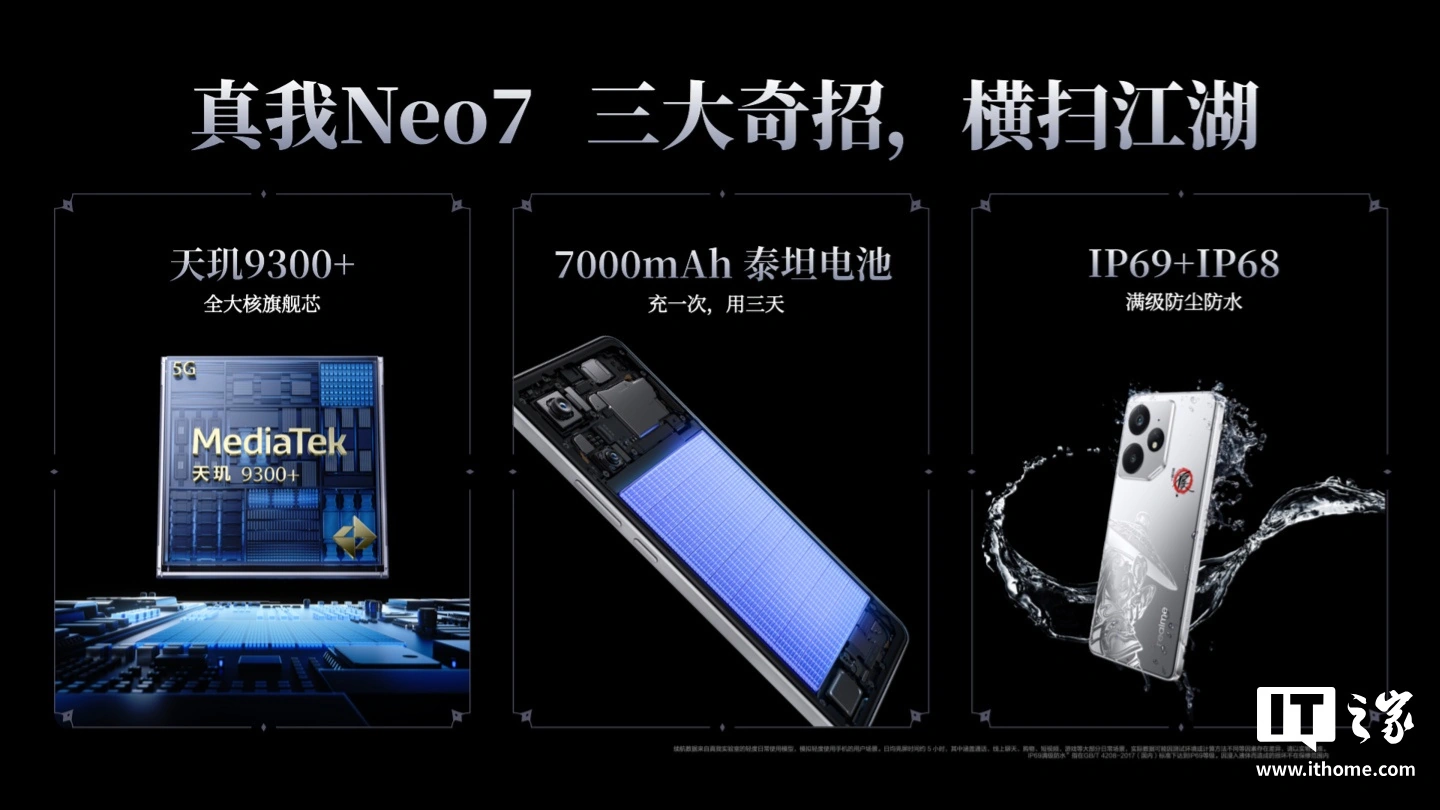《realme 真我 Neo7 手机发布:天玑 9300+ 处理器、7000mAh 电池》