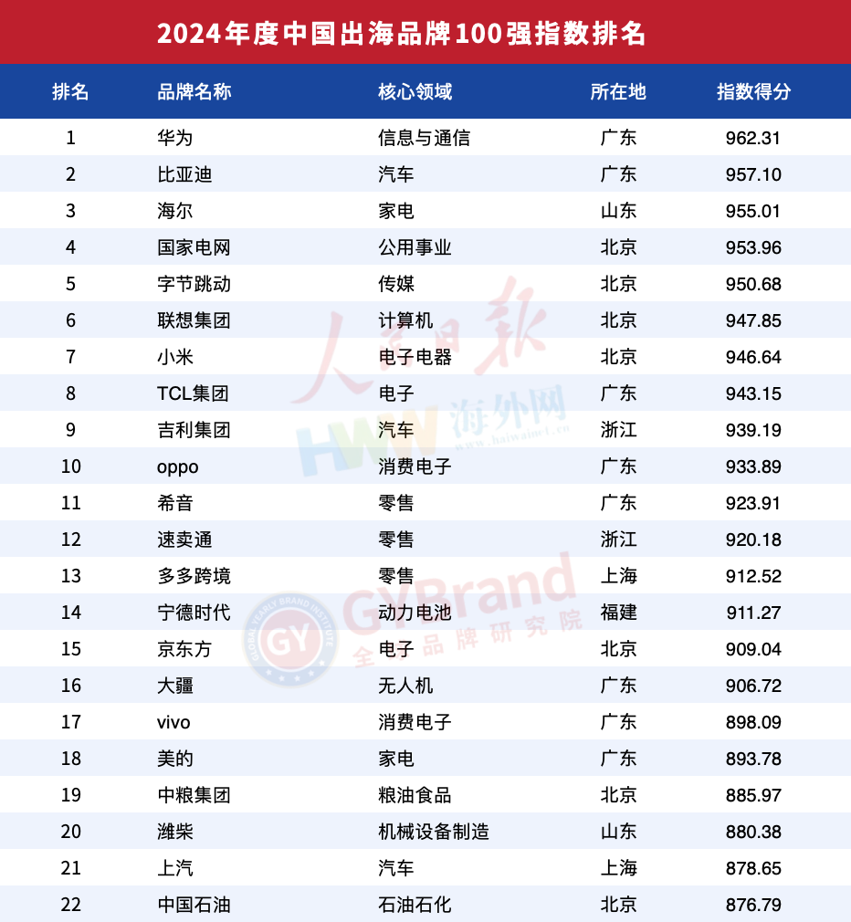 在第二届中国品牌形象海外传播论坛暨 2024 中国企业 ESG 蓝皮书发布会上,人民日报海外网与 GYBrand 全球品牌研究院联合发布了 2024 年度中国出海品牌 100 强指数。该指数从海外业绩、品牌建设、品牌贡献、可持续发展等四大维度对出海企业进行综合评价,全面展示了中国品牌在全球市场的卓越表现。其中,OPPO 凭借其在海外市场的优异表现和品牌影响力,成功跻身榜单前十,可见其在全球化战略中的取得了出色的成果。