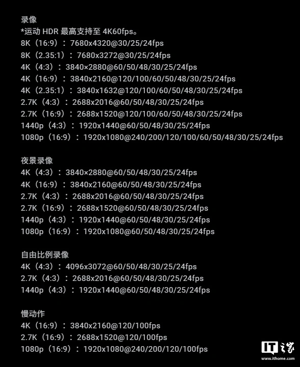 | 视频规格 | 最高 8K 30fps / 4K 120fps | |