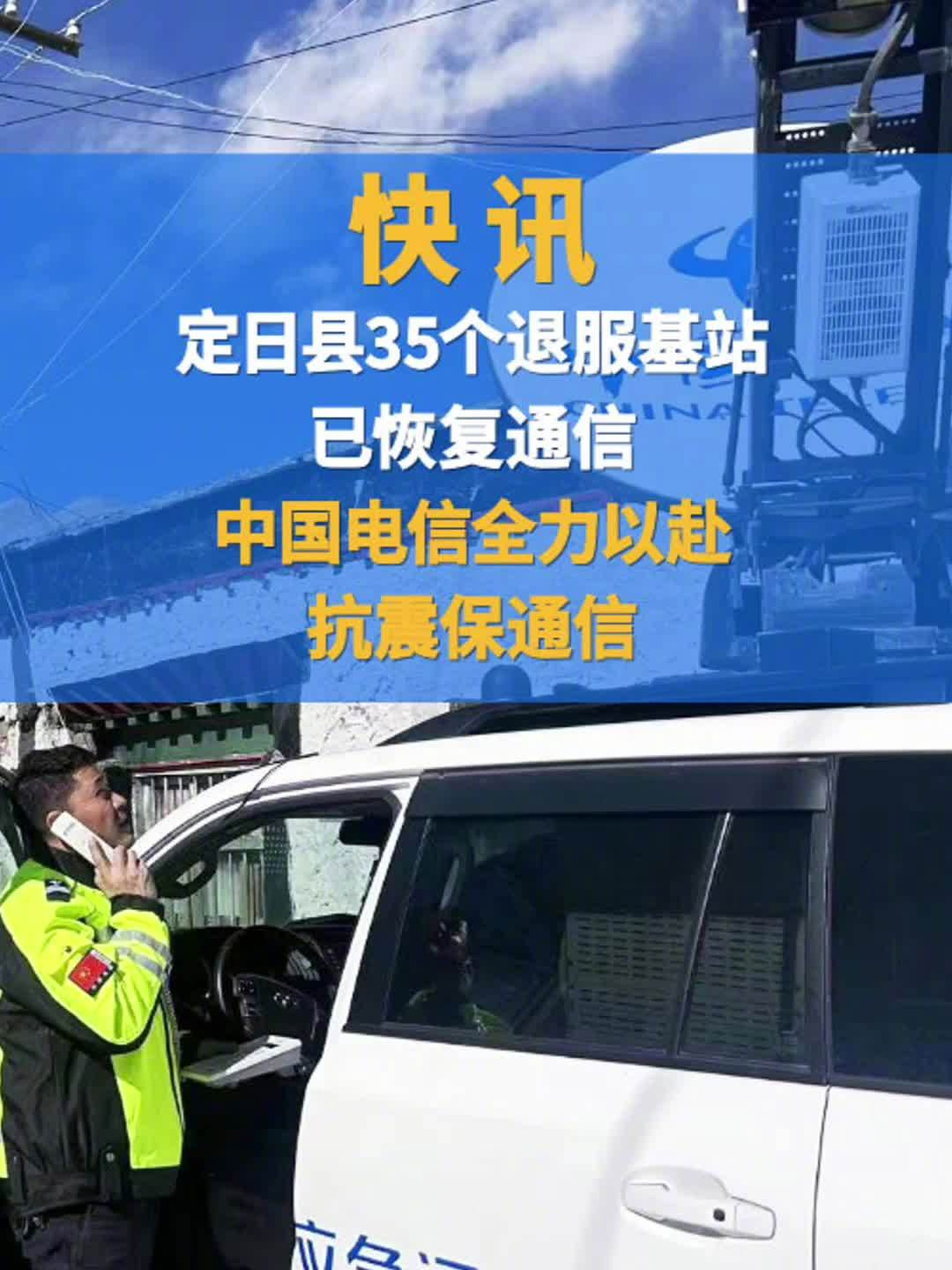 IT之家 1 月 8 日消息,中国电信今日宣布,1 月 8 日凌晨 02 时 34 分抢通曲当乡传输光缆后,西藏日喀则定日县 35 个退服基站恢复正常通信。