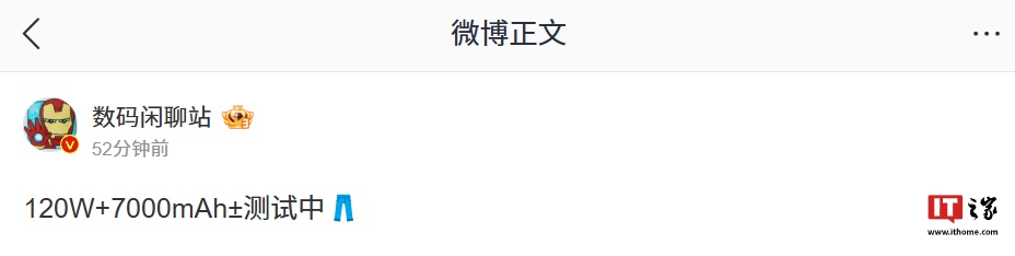 IT之家 1 月 9 日消息,博主 @数码闲聊站 今日发文透露,称某厂正测试 120W 快充 + 7000mAh± 电池组合。结合暗示符号及评论区讨论来看,测试机型预计为 iQOO 手机。