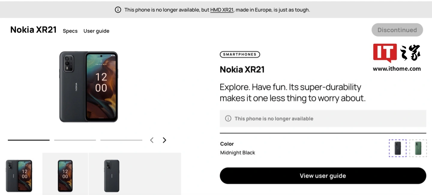 IT之家 1 月 10 日消息,HMD Global 现已在官网将诺基亚 XR21 标记为停产,这意味着该公司所有的“诺基亚”品牌智能手机均已停产。
