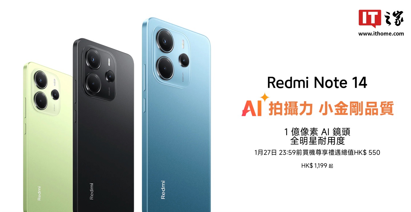 IT之家 1 月 10 日消息,小米旗下 REDMI NOTE 14 4G 手机(4G 版本)现已在全球市场发布,这款手机采用 Helio G99-Ultra + 6/8GB RAM + 128/256GB 存储空间配置,定价为 1199 港币(IT之家备注:当前约 1131 元人民币)起。