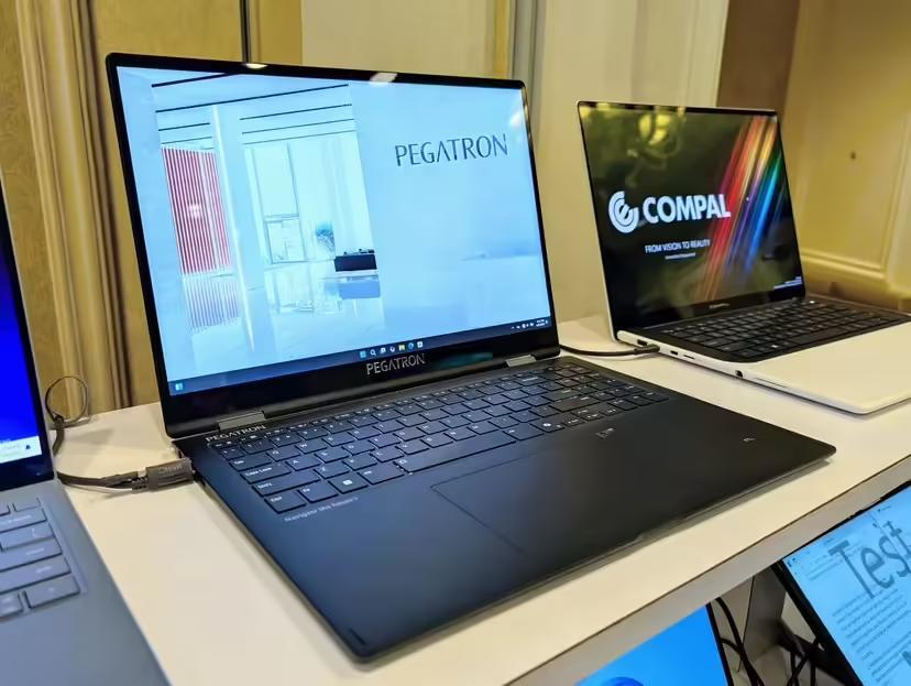 当然,这些笔记本电脑并非大家常见的产品,而是 ODM 大厂仁宝、和硕和纬创的演示样品。