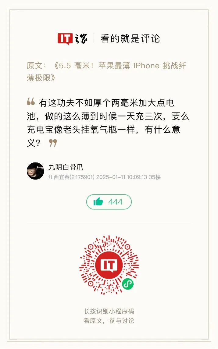 这一思路,也被我们的家友在 iPhone 17 Air 的评论区提到了。