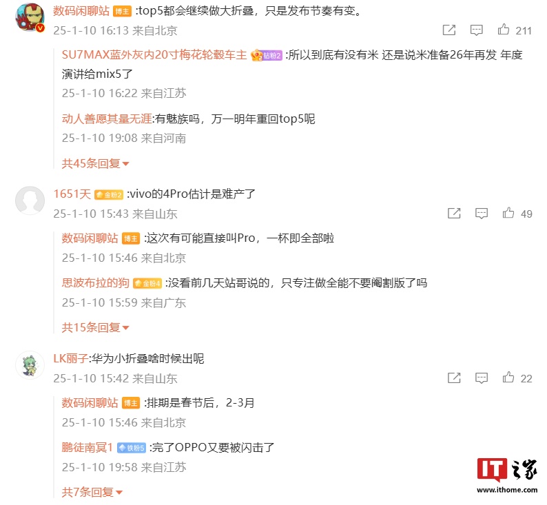 IT之家注意到,博主在评论区中补充说明:Top5 都会继续做大折叠,只是发布节奏有变。
