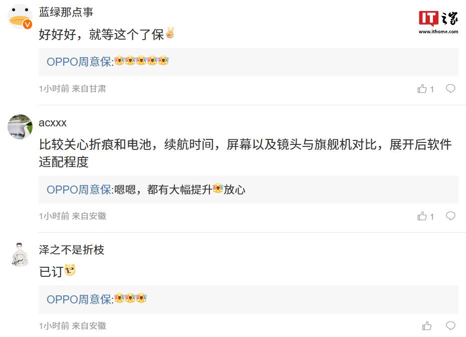此外,针对用户比较关心的折痕、电池、续航时间、屏幕及镜头等配置,周意保表示“都有大幅提升”。
