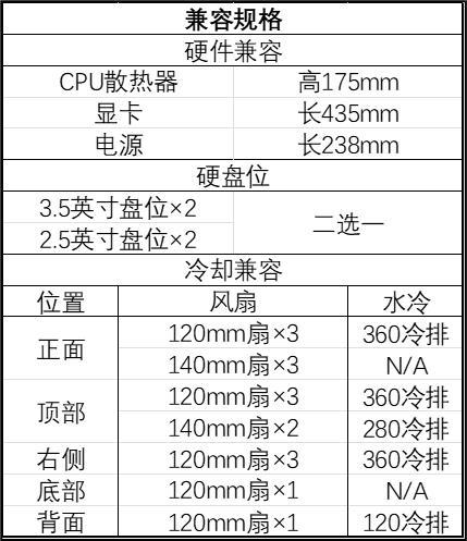 相较于全塔规格的 Tòu 2.0,PRISM 的整体尺寸降为中塔,拥有 7 条 PCIe 扩展槽,最大支持 ATX 主板,其硬件兼容性如下: