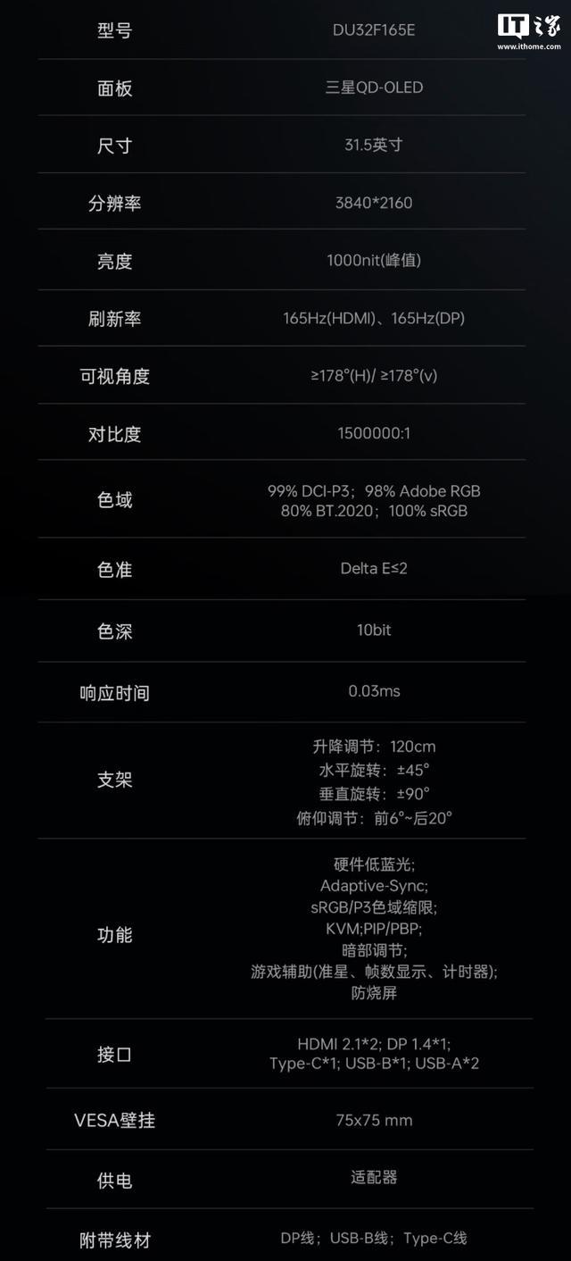 文章来源于互联网:凤凰网-雷神推出“DU32F165E”31.5英寸显示器:4K 165Hz OLED,5099元