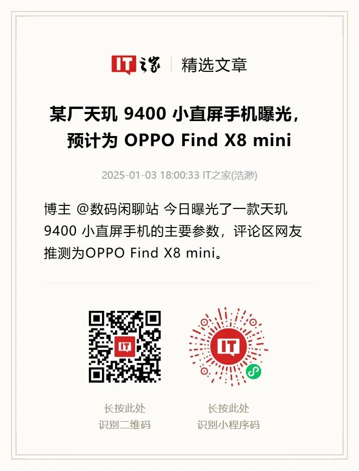 我们用排除法来分析,这里说的只能是 OPPO 了,我们暂时用“Find X9 Pro mini”来称呼这台手机。