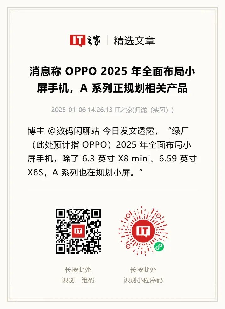 在年底“OPPO Find X9 Pro mini”击破超声波、潜望镜、无线充的不可能三角后,小屏旗舰手机也算是“卷”到了一个阶段。