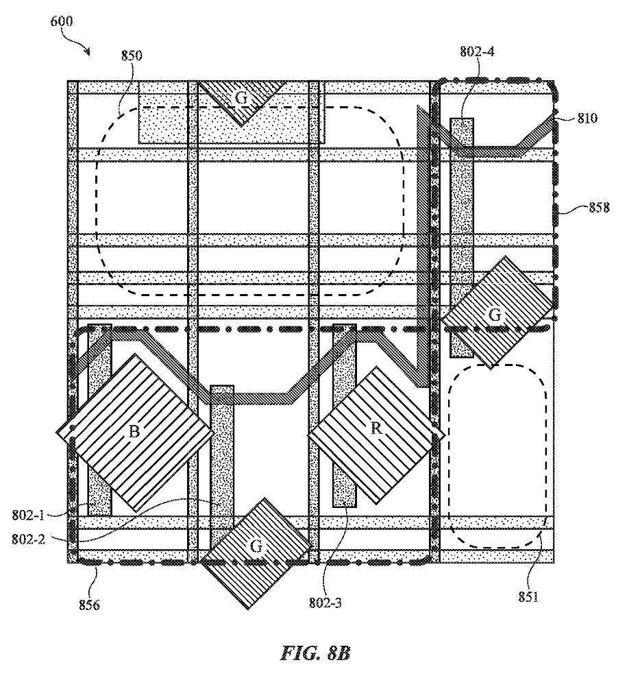 根据专利描述,屏幕上的“像素移除区域”与传感器部分重叠,并提出了多种移除方案,例如移除像素移除区域 50% 的子像素,或移除 10%-90% 的子像素,以提升光线透过率。
