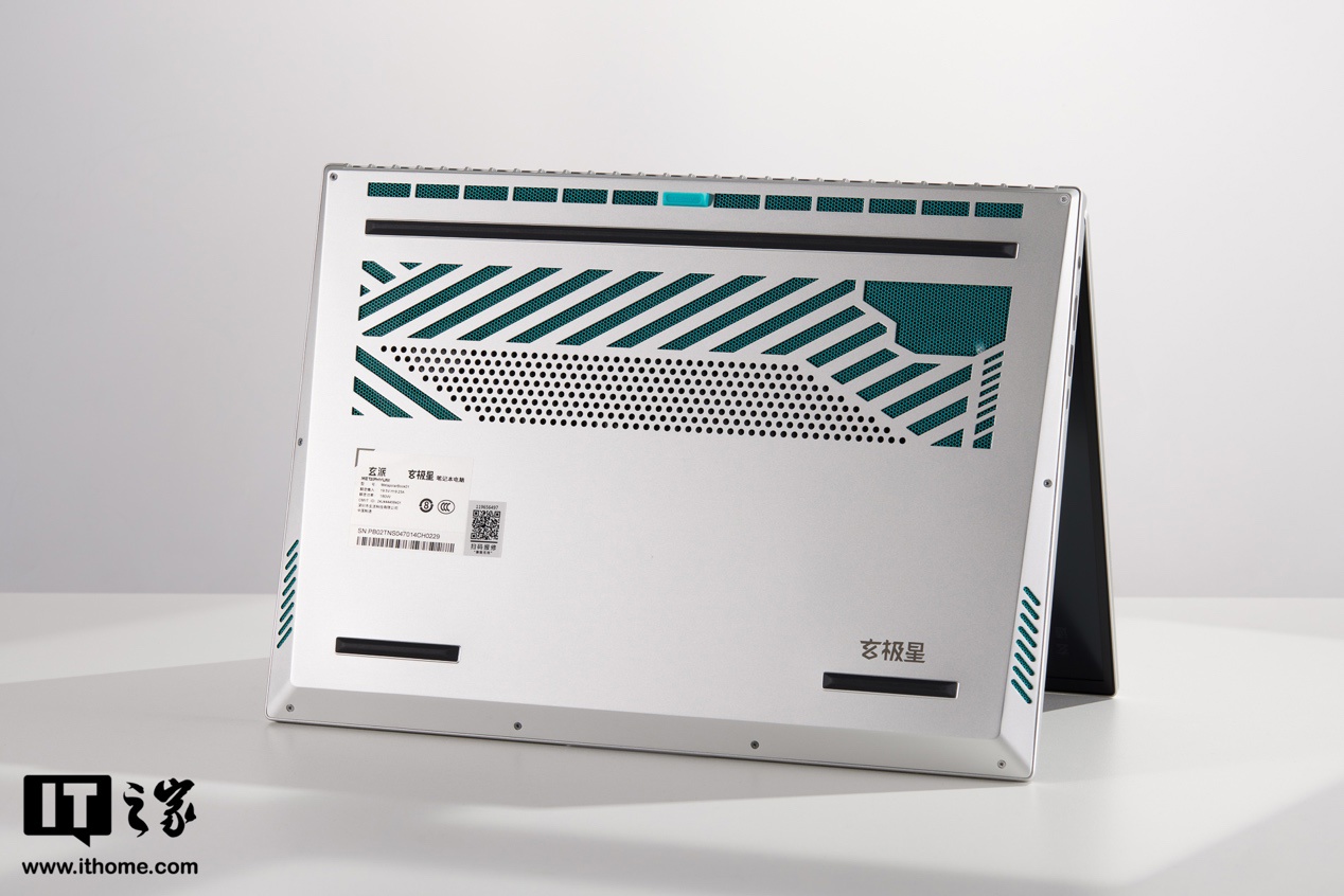 玄派玄极星 16 全能本这次在 C / D 面背部的出风口开孔上方做了一条 RGB 灯带,更加强调时尚科技感,相比玄机星系列的纯白简约,玄极星 16 走的则是炫酷路线。