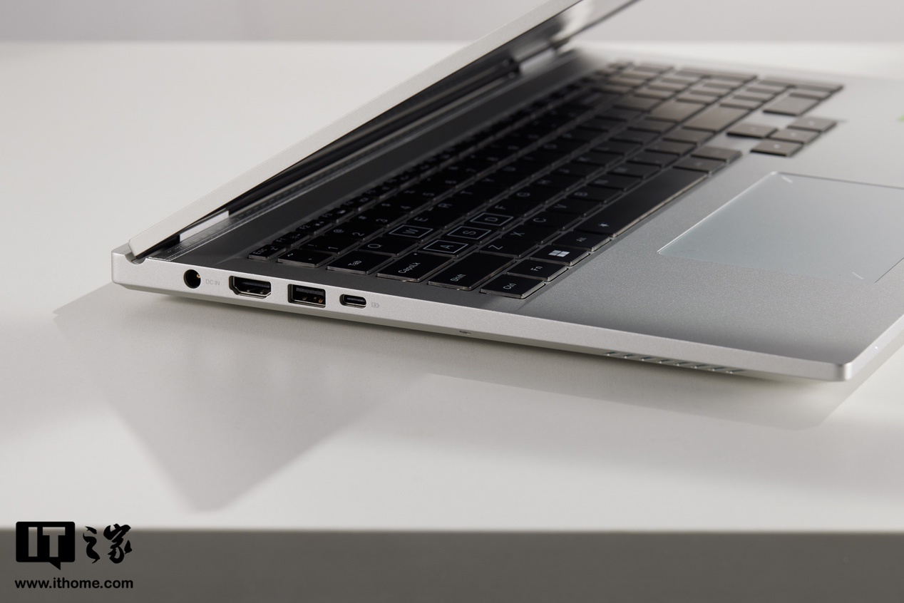 机身右侧则配备了防盗锁孔,USB3.2 Gen1 接口,3.5mm 音频接口以及 SD 卡槽,接口种类和数量都还不错,扩展性有所保障。