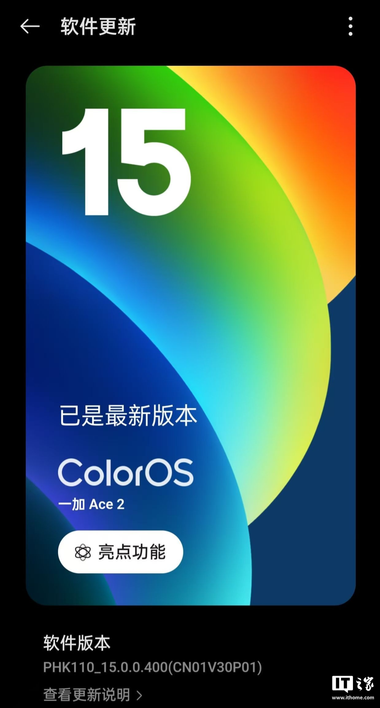 IT之家 1 月 19 日消息,一加 Ace 2 系列手机现获 ColorOS 15.0.0.400 升级,该版本新增流体云支持显示充电信息、照片模式 / 人像模式三种胶片风格滤镜等功能。