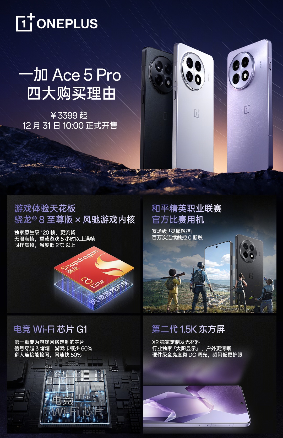一加 Ace 5 Pro 手机今日直降 400 元,且在 2999 元的优惠价基础上还支持叠加 15% 国补优惠。