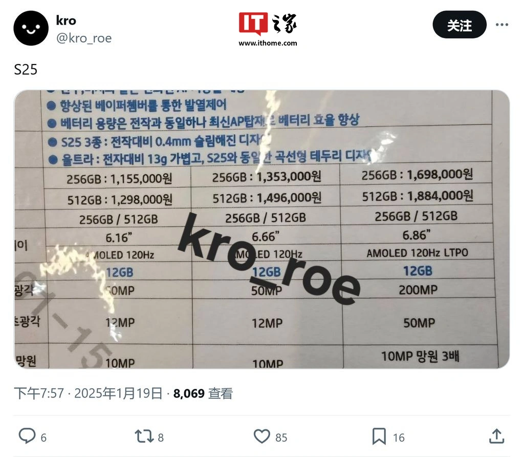 文章来源于互联网:IT之家-韩版三星 Galaxy S25 系列手机售价曝光:256GB 版不变、512GB 版略涨