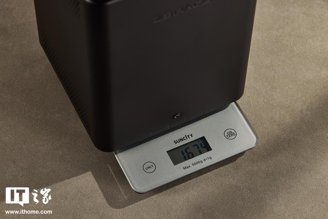 整体来看,极空间 Q4 为圆角长方体的造型,侧身黑色的外壳进行一体化的包裹设计,IT之家拿到的是黑色款,通体全黑,看起来非常简洁优雅,硬朗的直线和温润的曲线元素并存,放在家里属于很百搭的那种。